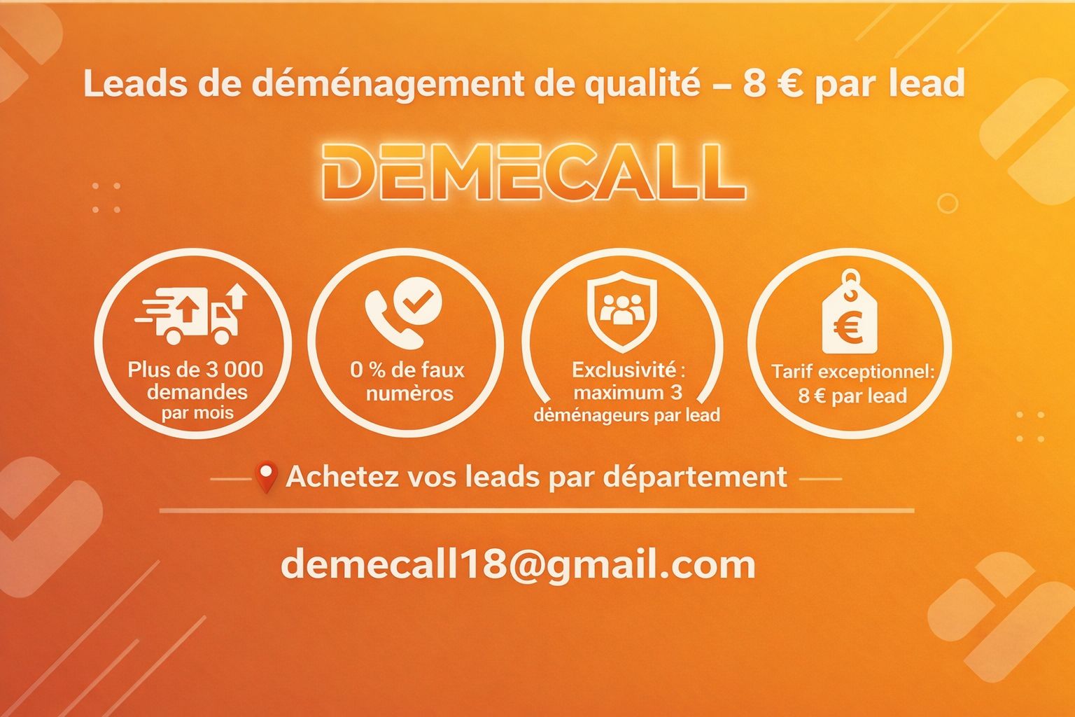 Vos informations sont utilisées uniquement pour traiter votre demande de devis. Conformément au RGPD, vous pouvez demander l’accès, la rectification ou la suppression de vos données à tout moment en nous contactant à : demecall18@gmail.com.